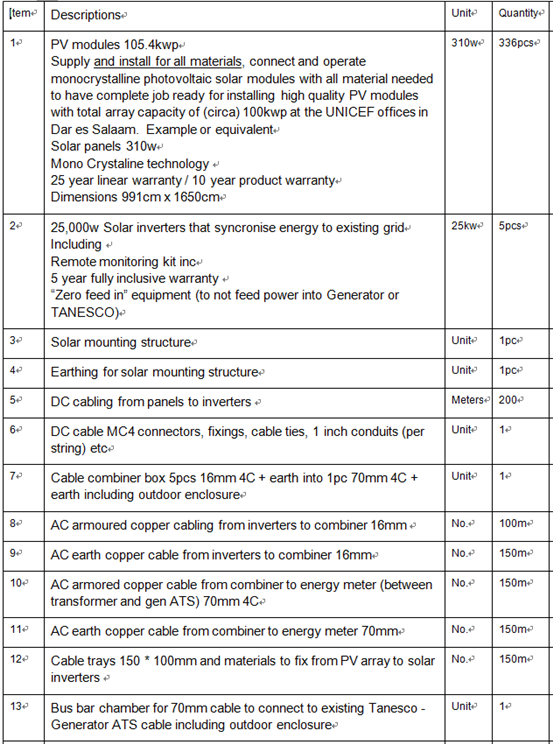 坦桑尼亞太陽能設(shè)備采購