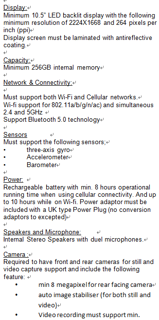 1.平板參數要求: