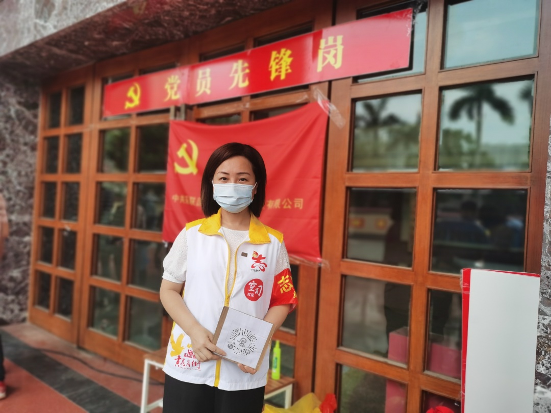 時間就是命令,一名黨員就是一面旗幟。采聯(lián)集團黨支部書記黃莉莉帶頭做表率,沖鋒在前,頂著烈日在核酸檢測現(xiàn)場指導社區(qū)居民掃描二維碼,填報資料。