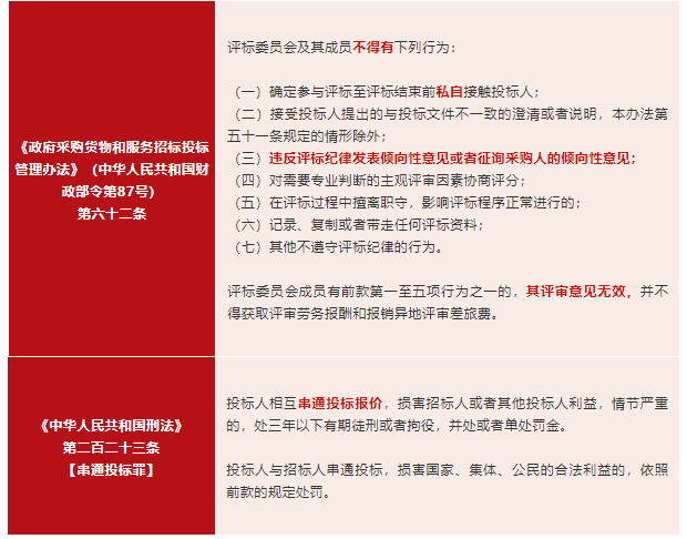 最后,在評審過程中,采購人或采購代理機構發現評標專家存在發表傾向性意見或者征詢采購人的傾向性意見等違反評標紀律情形時,應及時制止,維護評審秩序。