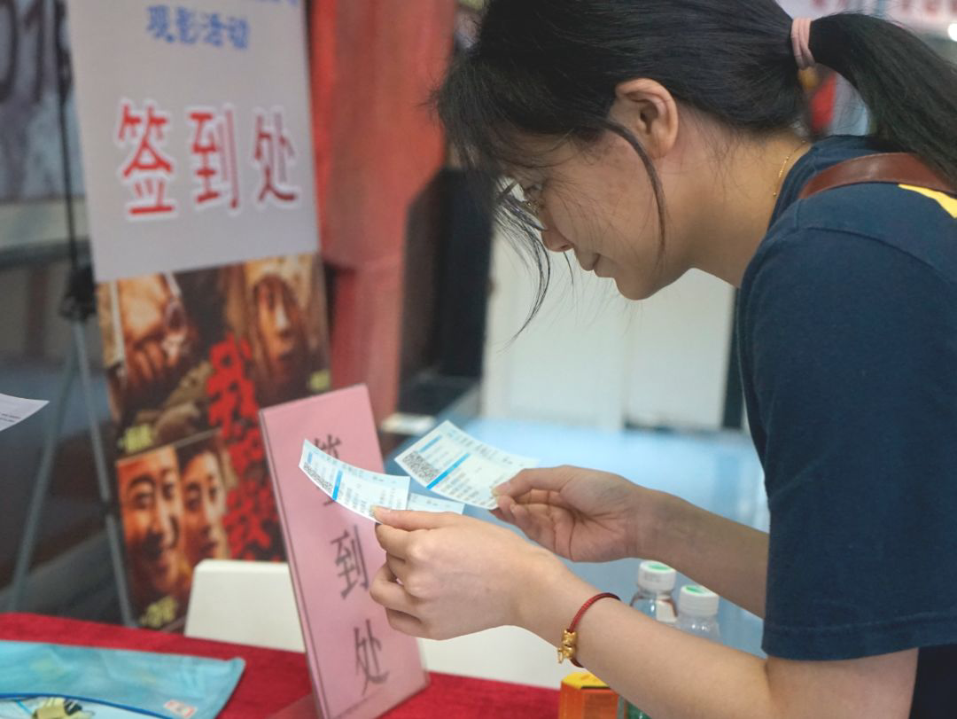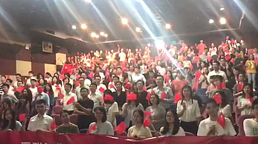 10月9日18:00起,報(bào)名前來觀影的群眾已經(jīng)陸陸續(xù)續(xù)在簽到領(lǐng)票。在簽到處,采聯(lián)為大家準(zhǔn)備了小國旗。簽到完畢大家都興高采烈紛紛抓起手中的國旗合照留影,對本次觀影的期待和欣喜之情溢于言表。